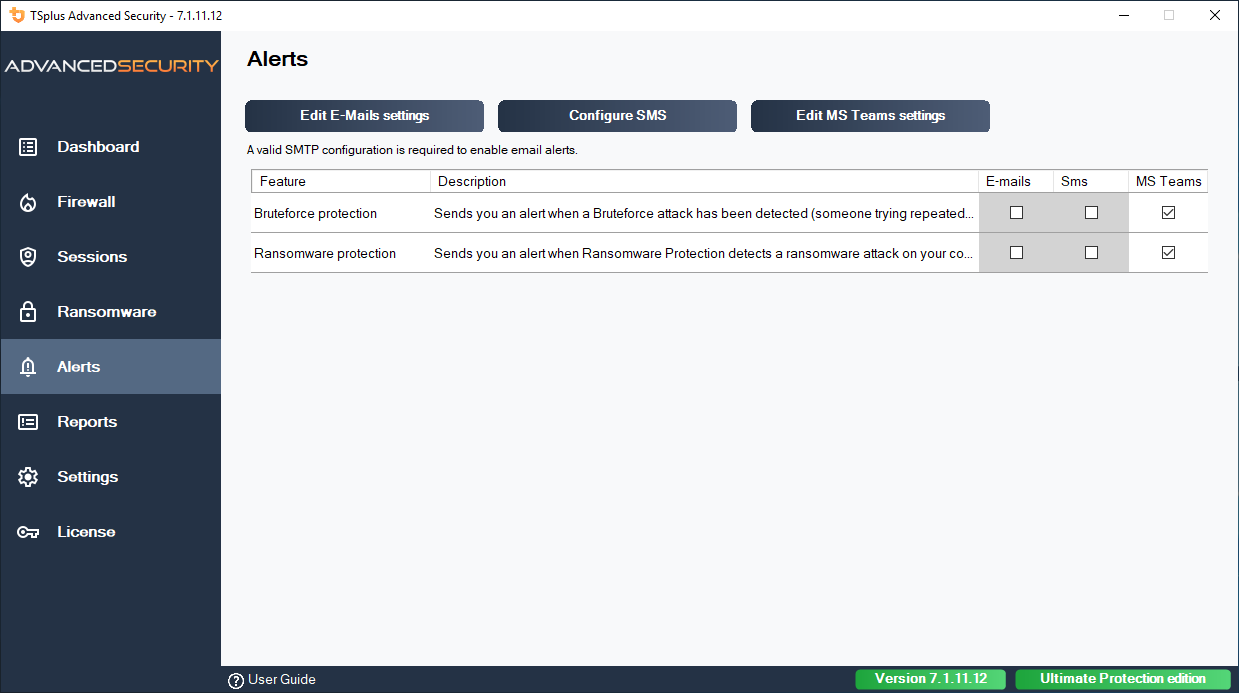 Получайте уведомления в режиме реального времени. Настройте параметры SMTP для ШАТЛ ТСплюс Advanced Security, чтобы отправлять вам уведомления по электронной почте о важных событиях безопасности.