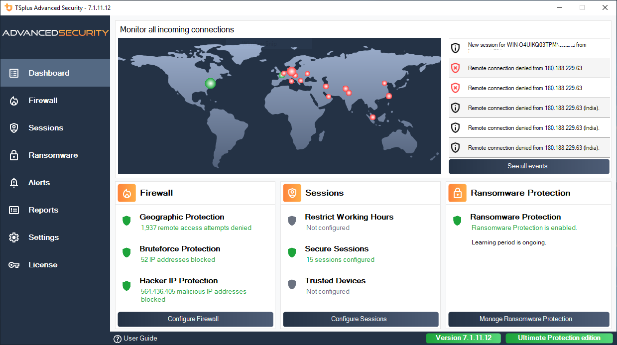 Защитите свои серверы приложений и удаленный рабочий стол всего за несколько кликов. Заблокируйте хакеров и защитите свою ИТ-инфраструктуру с помощью самых мощных функций безопасности в одном комплексном инструменте кибербезопасности.