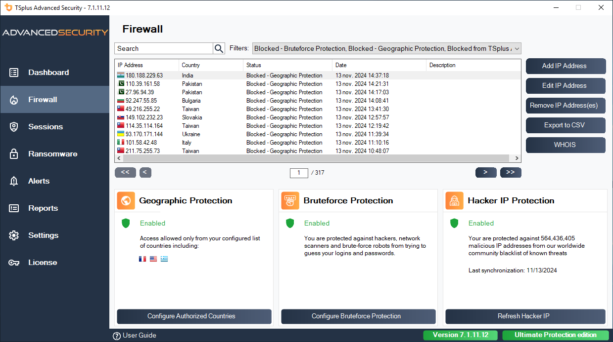 Защита от брутфорса позволяет вам защитить ваш публичный сервер от хакеров, сетевых сканеров и брутфорс-роботов, которые пытаются угадать ваш логин и пароль администратора. Мониторьте неудачные попытки входа в Windows и автоматически блокируйте нарушающие IP-адреса после заранее установленного количества неудач.