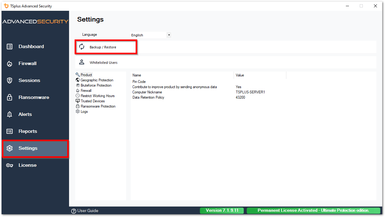 Резервное копирование/восстановление данных и настроек в безопасной и частной базе данных, деактивация брандмауэра Windows для использования встроенного брандмауэра ШАТЛ ТСплюс Advanced Security, включение/отключение журналов служб и функциональностей и многое другое!