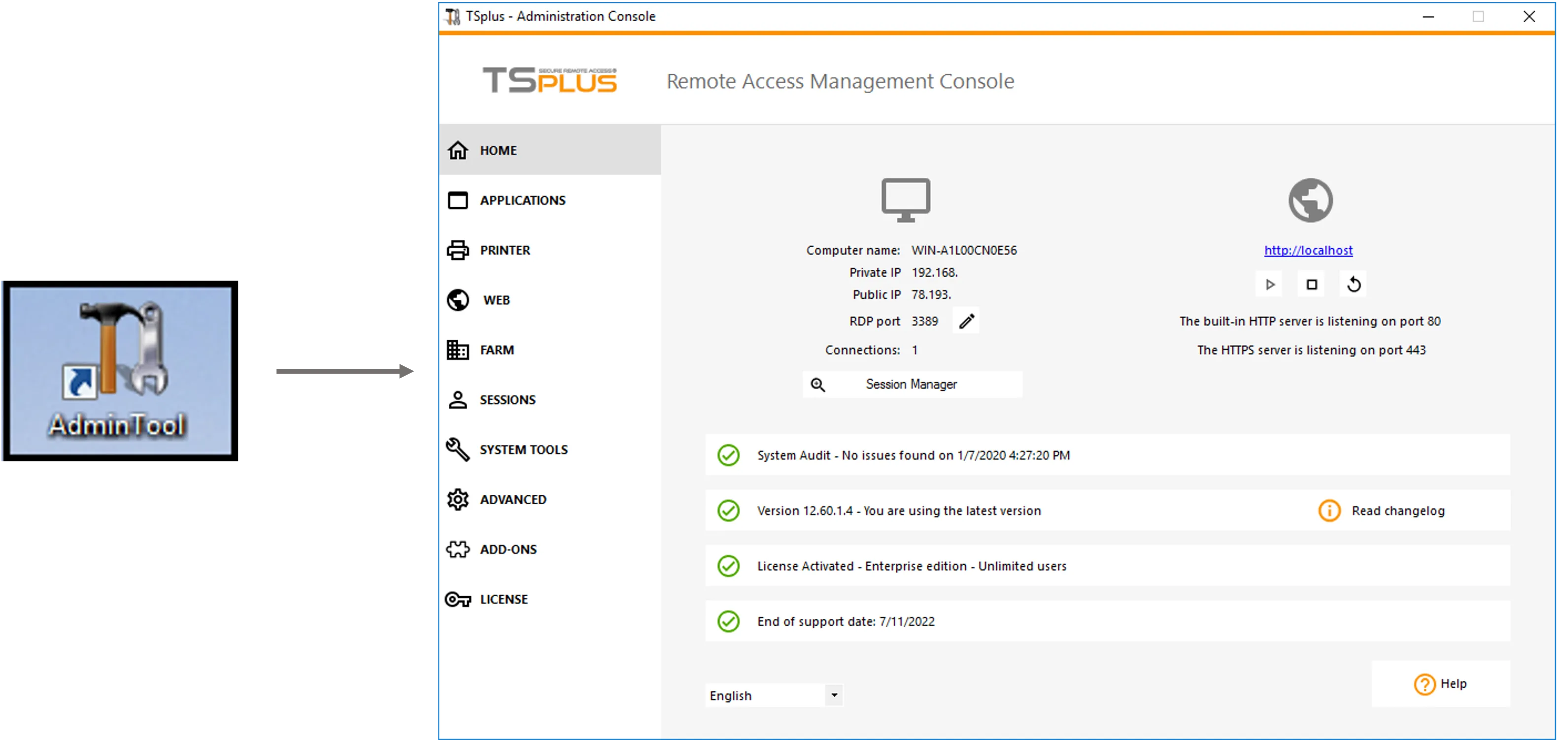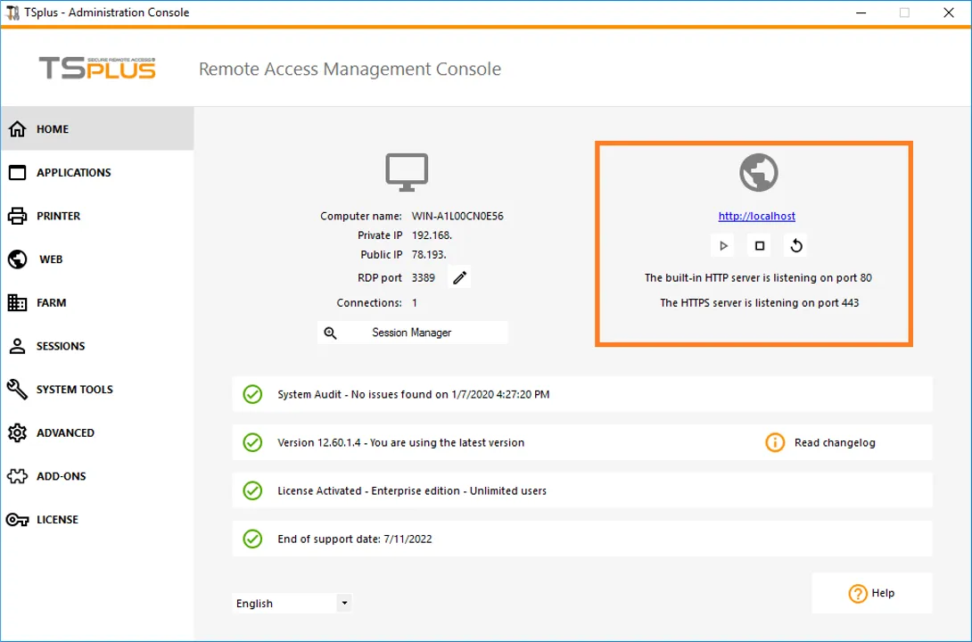 Вы можете изменить RDP порт на вкладке Home. А порты 80/443 можно изменить на вкладке Web Server.