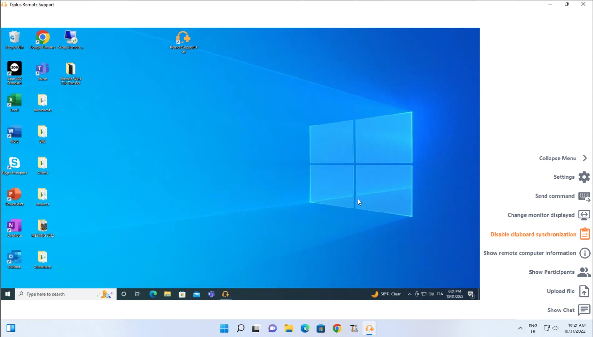 После успешного подключения агенту будет представлен рабочий стол конечного пользователя, а также управление мышью и другими периферийными устройствами конечного пользователя.